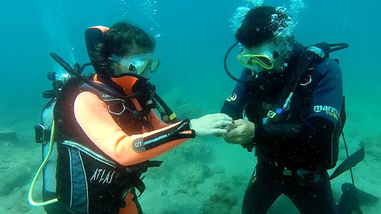 Alanya'da romantik anlara sahne olan bir evlilik teklifi gerçekleşti. Kentte restoran müdürlüğü yapan M.A. (28), uzun süredir birlikte olduğu E. U.'a (28), Okurcalar Mahallesi açıklarında tüplü dalış sırasında evlilik teklifi yaptı. Çiftin bu özel anları, su altı kamerasıyla saniye saniye kaydedildi. Dalış eğitmenleri ve arkadaşlarının da destek verdiği organizasyon, hem romantik hem de unutulmaz bir anıya dönüştü. Öte yandan, sosyal medyada paylaşılan görüntüler kısa sürede büyük ilgi gördü.